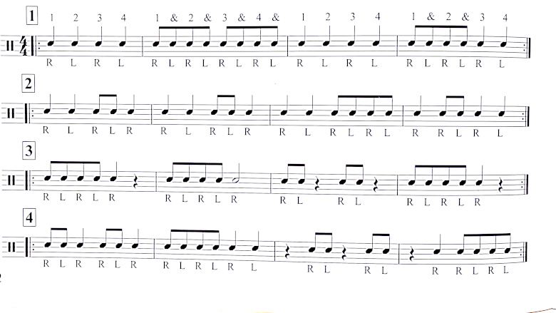 We often think of drums as just a beat in the background; however, drums can have music sheets just like other instruments See Image from Hal Leonard's book DRUMSET METHOD 1
